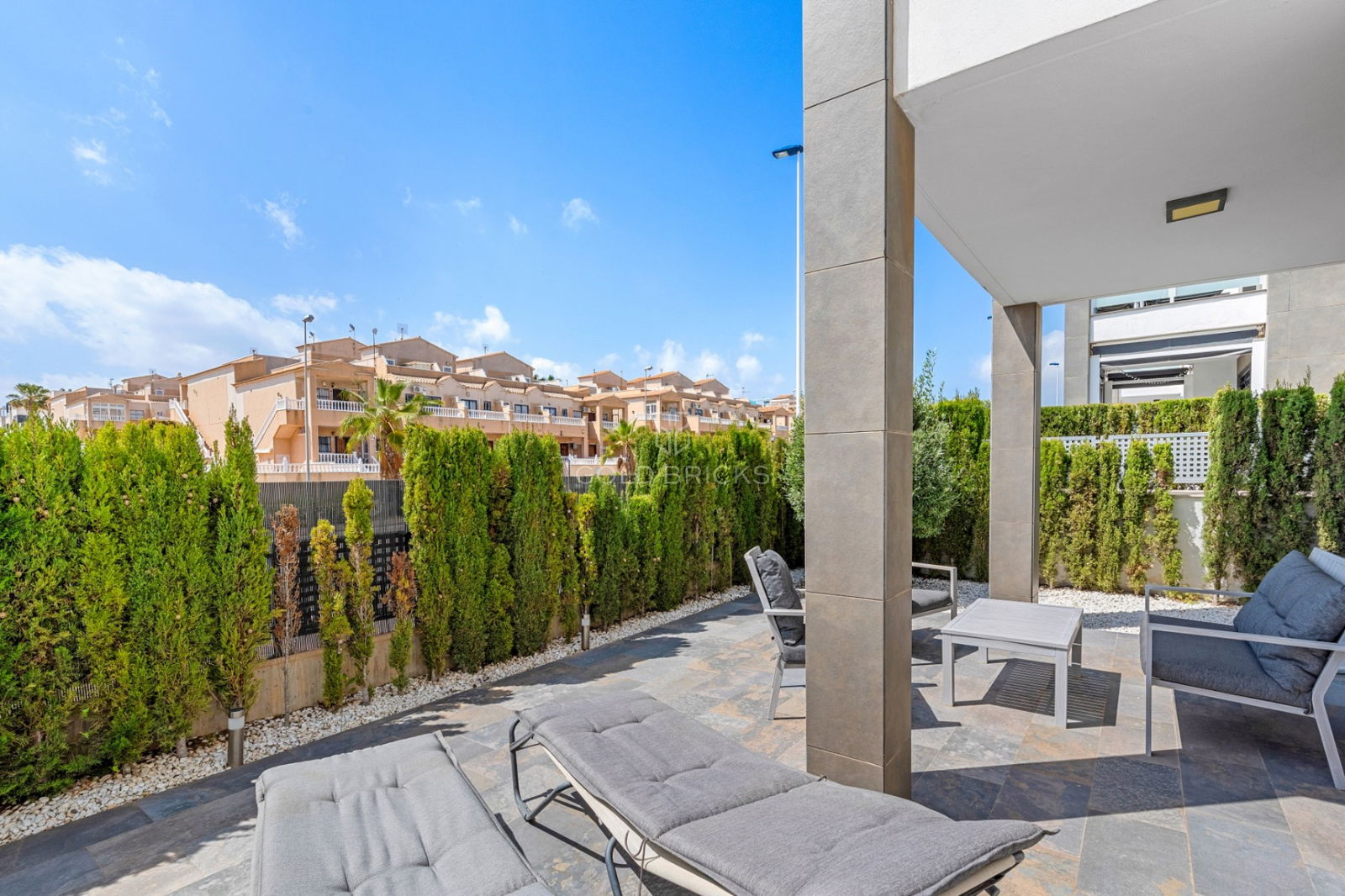 Ons complex is gelegen in één van de nieuwste woonwijken van Punta Prima, slechts 5 minuten lopen van winkelcentrum Punta Marina, waar alle voorzieningen die u verwacht nodig te hebben aanwezig zijn. Zo is er een divers aanbod van winkels, bars, restaurants en supermarkten aanwezig. Stuk voor stuk zijn de restaurants super goed en kan je er naborrelen tot laat (02.30 uur). Zo is het heerlijk om s'ochtends/s'middags op het strand te liggen, op te frissen in het appartement en lopend naar de restaurants te gaan.